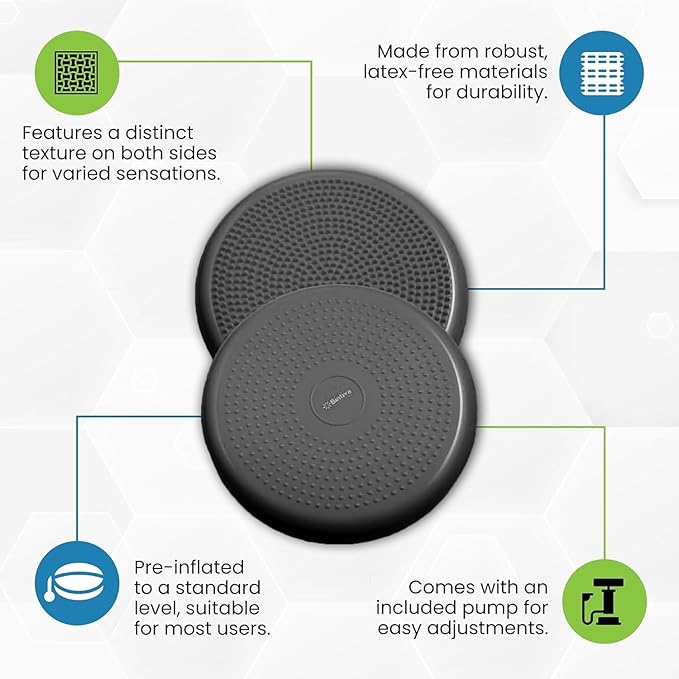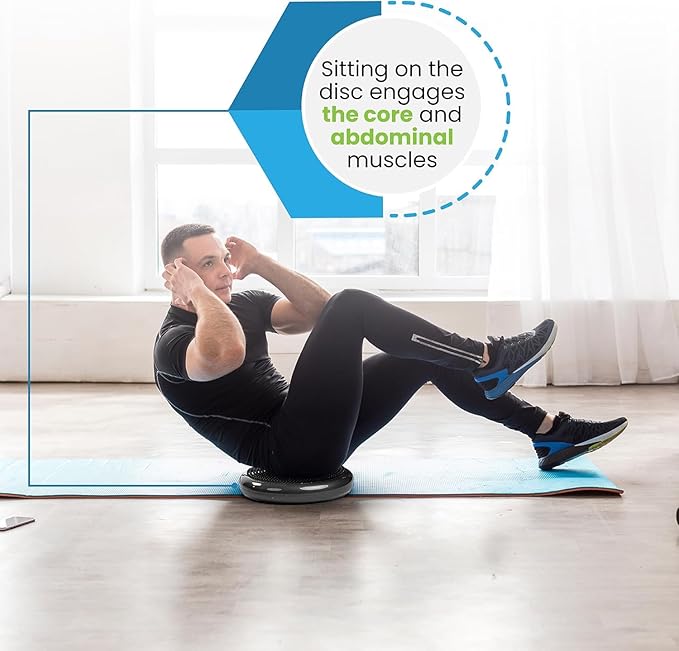 • Balance disc promotes core stability, strengthens muscle tone, improves balance and body posture.