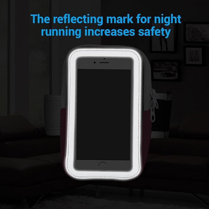 - BONUS FEATURES: 1. Built With Earphone Hole: Put Your Headset Through The Earphone Hole At The Bottom And Connect Your Phone; 2. Our Armband Includes A Reflective Strip For Safe Running In Low Light Conditions. 3. Touch Screen Compatible: Enjoy Full Navigational Control Of Your Phone Such As Receiving Calls, Changing Music, Editing Text Messages Even Games Without Taking Out The Phone