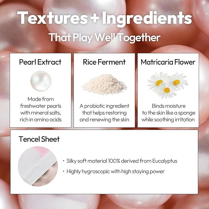 • HIGHLIGHTED COMPLEXION - Pearls are long held symbols of beauty and sophistication.The mask’s essences improve and balance skin tone to reveal a healthy, nourished complexion.