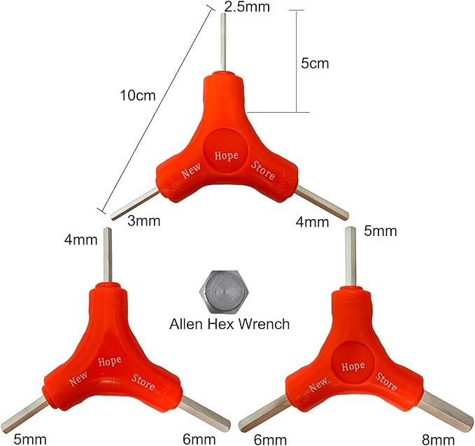 • 3Pcs Allen Wrench set: Each Allen wrench has three size, 2.5mm, 3mm, 4mm; 4mm, 5mm, 6mm; 5mm, 6mm, 8mm. More size for your choice, it can meet your need perfectly.