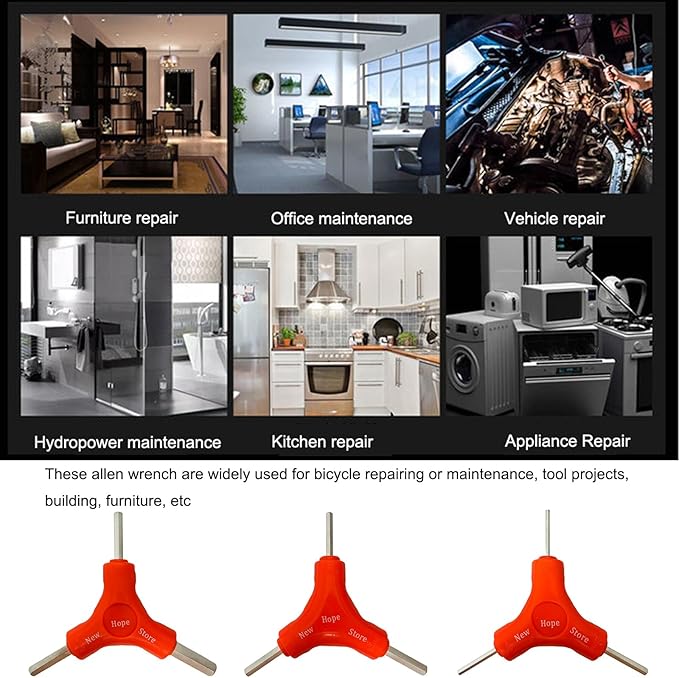 • Widely application: Y-type design is more labor-saving, three way Allen wrenches, widely used for bicycle repairing or maintenance, tool projects, building, furniture, etc