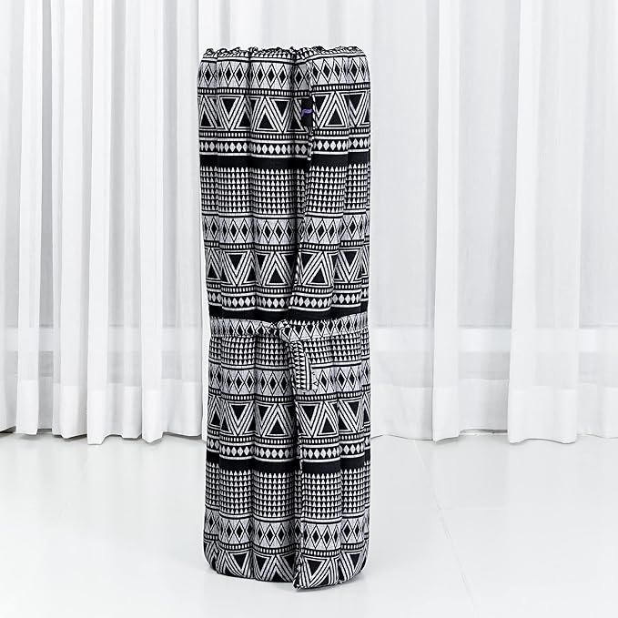 • Contents: The yoga meditation mat measures 28 x 28 x 2 inches (WxDxH) when spread out. After use, it can be rolled-up for storage and transport. The rolled-up mattress measures 28 x 8 x 8 inches (WxDxH)