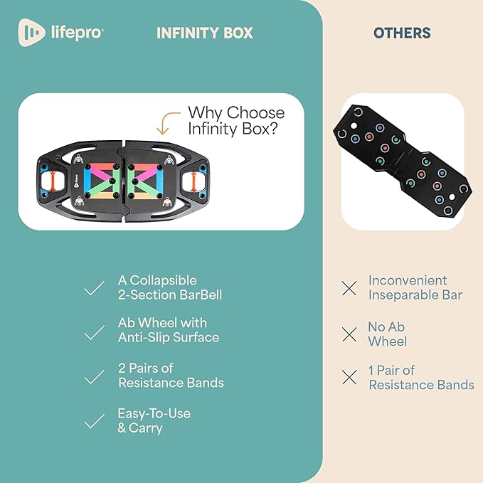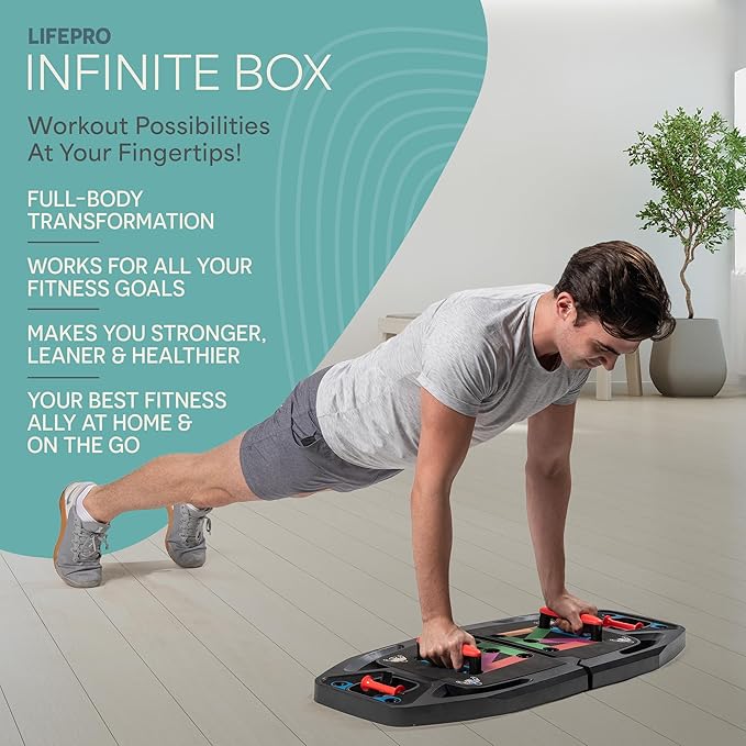 • FOR ALL AGES & FITNESS LEVELS: The InfinityBox home exercise equipment with a push up board is designed for both beginner & experienced gymgoers & give everybody the convenience of a home workout.