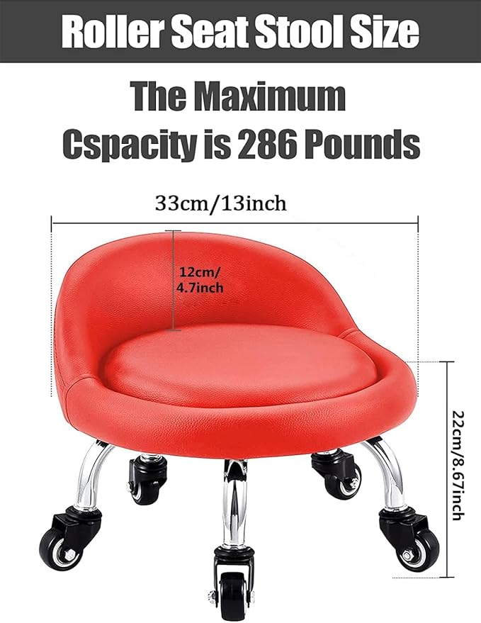 - Unique Stool Design: Low rolling stool seat chair is according to the design of human motion mechanics, the height of the stool from the ground is 8.67 inches and the diameter of the seat is 12.1 inches. The maximum weight of the low seat can support human or other objects is about 286 pounds.