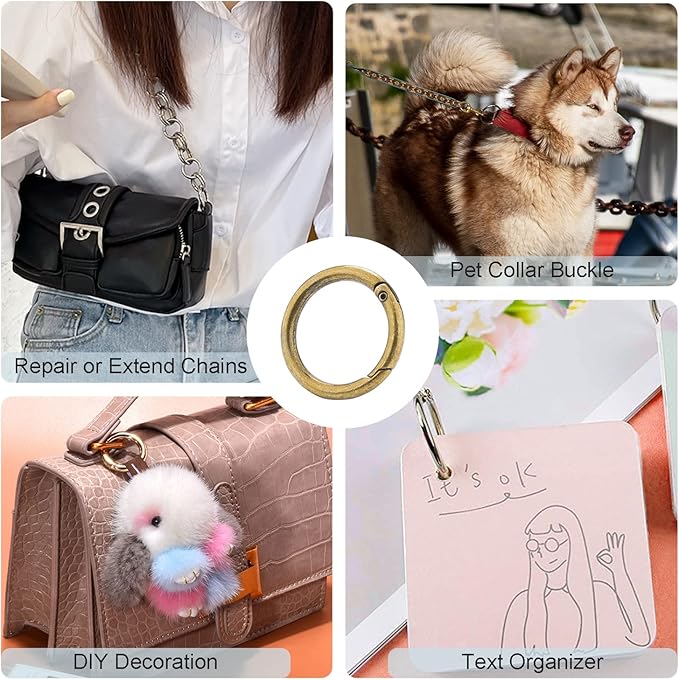 - Ease of use: Spring O ring keychain clip design, simple to use and easy to open and close, can be connected and released quickly, round trigger snap ring perfect for an extend for your handbags or a replacement ring for straps, spring o ring are an indispensable quality accessory for repair items