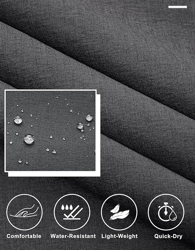 • Comfort Fabric: Lightweight, stretchy, quick dry, moisture wicking fabric keeps you dry and cool all day, gentle stretch and shape-retention, water-resistant capacity to help resist light rain for a short time. PS: Although the pants may arrive with some creases due to packaging, a simple water wash will eliminate them
