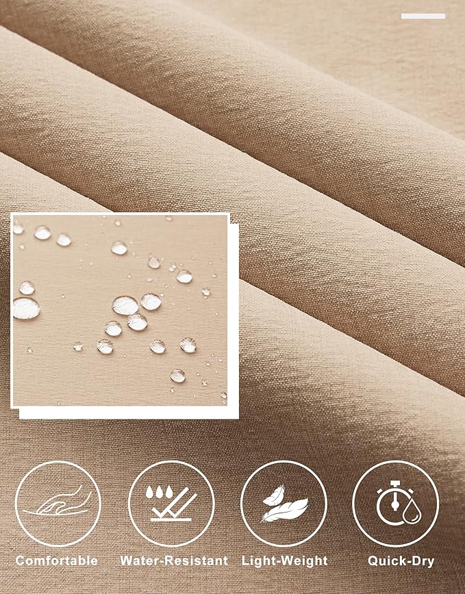 • Comfort Fabric: Lightweight, stretchy, quick dry, moisture wicking fabric keeps you dry and cool all day, gentle stretch and shape-retention, water-resistant capacity to help resist light rain for a short time. PS: Although the pants may arrive with some creases due to packaging, a simple water wash will eliminate them