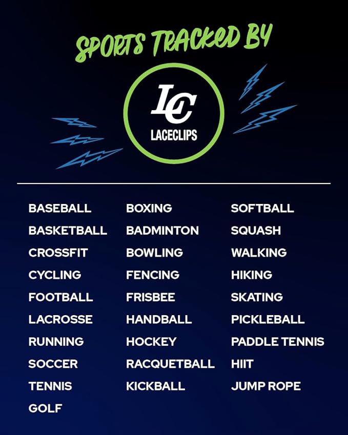LC LaceClips Smart Activity Tracker - Shoe-Mounted Step Counter for Walking & Sports Performance Monitor - Track 25+ Activities, Jumps & Calories with App - No Subscription Required (Black)