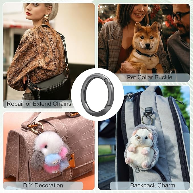 - Easy to Use: Designed with a spring keychain clip, these round carabiner clips are simple to open and close. They provide quick and secure connections, making them ideal for extending handbags or replacing straps. An essential accessory for repairing items