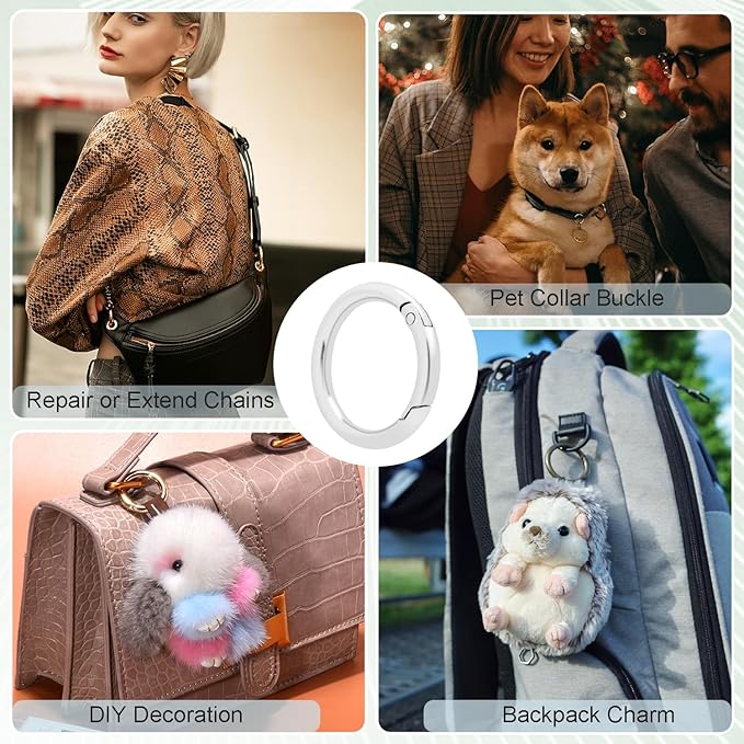 - Easy to Use: Designed with a spring keychain clip, these round carabiner clips are simple to open and close. They provide quick and secure connections, making them ideal for extending handbags or replacing straps. An essential accessory for repairing items