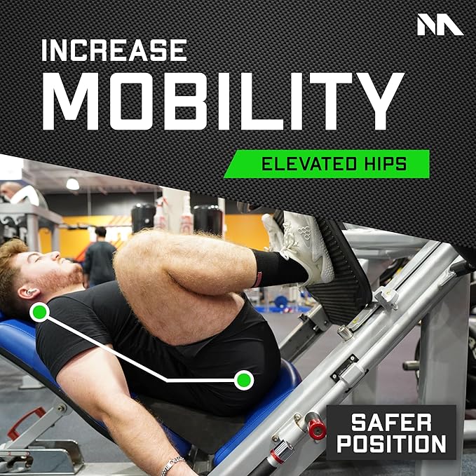 - π ENHANCE HIP MOBILITY: Enjoy a smoother range of motion with elevated hips, ensuring clean, consistent reps. This is the perfect addition to your leg press home gym, enhancing the utility of your existing weight lifting equipment. As a premier piece of hip trainer and small exercise equipment, our leg press wedge works seamlessly with different setups, elevating your hip exercise.