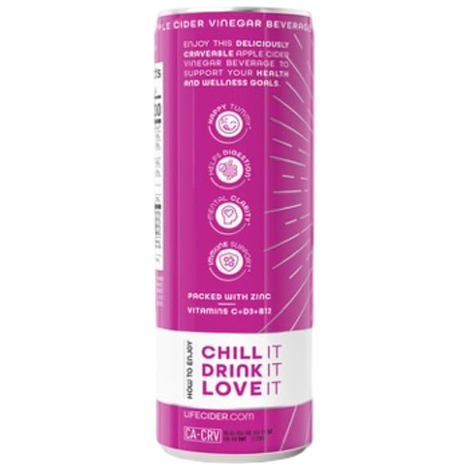 Life Cider | 12 Pack (12 Fl Oz) | Tropical Raspberry | Sparkling Apple Cider Vinegar Beverage | Digestive Health & Immunity Benefits | Low Calorie & Low Carb Drinks | Vitamins C, D3, Zinc, B12