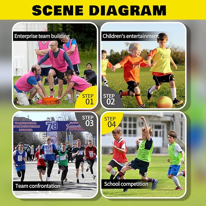 • 【3 size options】---scrimmage pinnies offer 3 sizes(M,L,XL) , whether it’s kids youth adults there are sizes that suit you. You can purchase a team jerseys that suits your needs,Medium for kids, Large for adults and youth, X-Large for big and tall adults.
