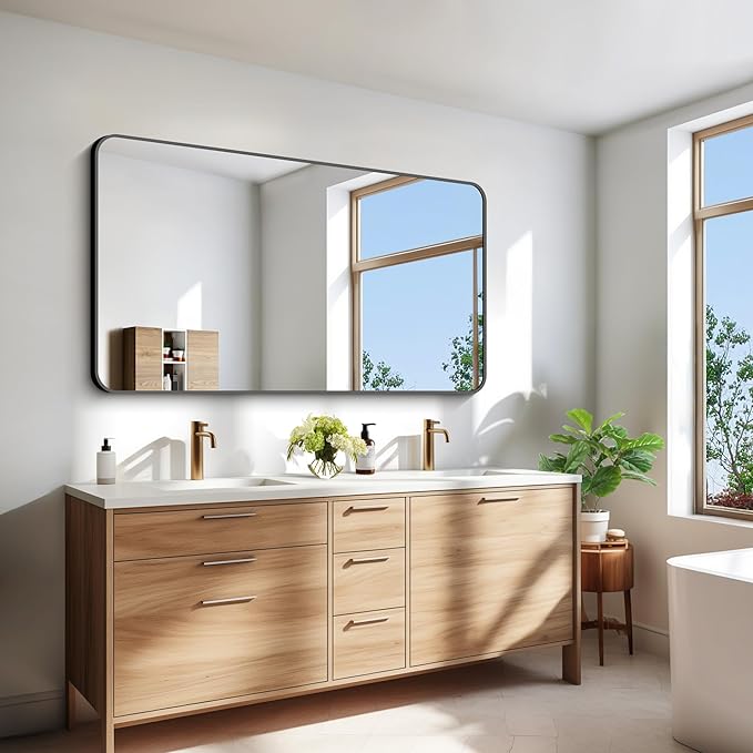30x55 inch Bathroom Mirror,Black Rectangle Mirror,Wall Mounted Bathroom Frame Vanity Mirror with Round Corner for Bedroom Living Room, Entryway Hangs Horizontal or Vertical