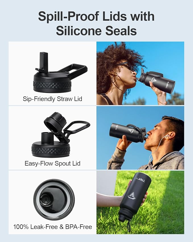 - 100% Leak-Proof: Topre 32oz stainless steel water bottles includes two lidsβa straw lid and a spout lid. Both are equipped with silicone rings to prevent any spills or leaks, and are completely BPA-free for your peace of mind.