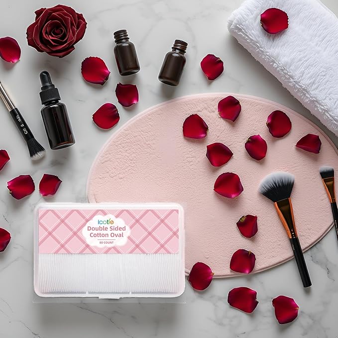 Large Oval Cotton Pads, 80 Count, Multi-Layer, Lint-Free, Dual-Sided, Ultra-Soft Cotton Oval Pads for Makeup Removal, Cleansing, and Toner Application