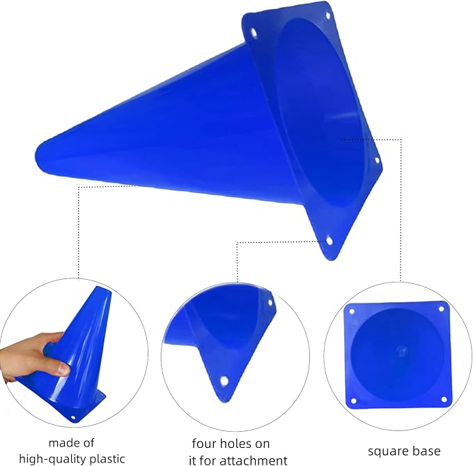 • Versatile: Set of 24 plastic blue traffic cones, 7 inches tall, ideal for various sports drills, training exercises, and festive events.
