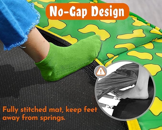 - ✔️【No-Gap Design】 ASTM safety certified. The Goderfuu baby trampoline is designed with an integrated pad and mat, the no-gap design prevents any pinch points that might trap feet or toes, reducing the risk of injury or falls