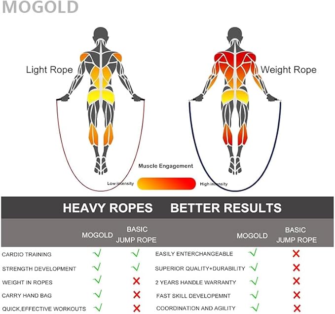 • Jump Rope Weighted Design: These jump ropes feature 1/2 lb weighted rope cable for an intense cardio and strength training workout.