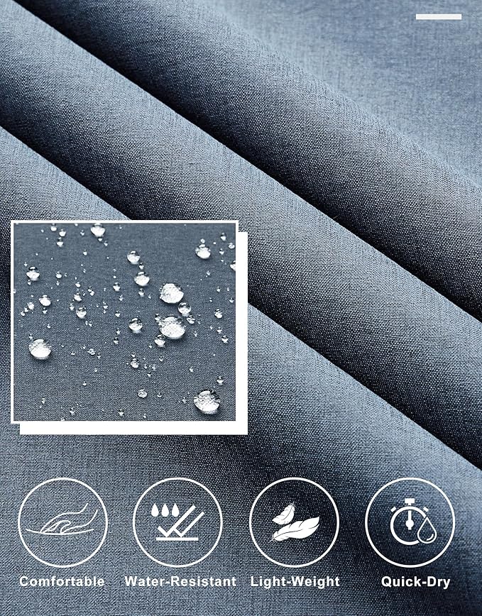 • Comfort Fabric: Lightweight, stretchy, quick dry, moisture wicking fabric keeps you dry and cool all day, gentle stretch and shape-retention, water-resistant capacity to help resist light rain for a short time. PS: Although the pants may arrive with some creases due to packaging, a simple water wash will eliminate them