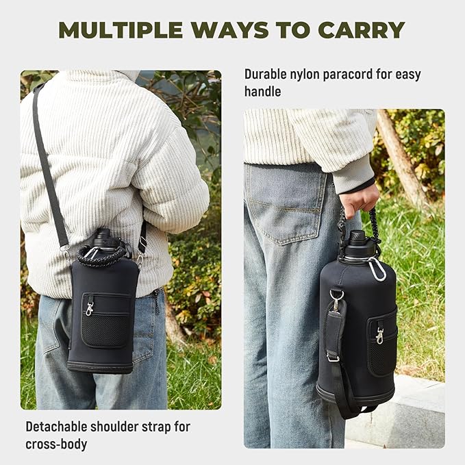 - What You'll Get: Buy 2 pack one gallon insulated water bottle, independent carton packagingοΌget double accessories (Carrying Pouch, Straw Lid with 2 Straws & Straw Brush, Spout Lid, Paracord Handle, Bottle Brush). We offer Continuous After-sales Service and 100% customer satisfaction against any leakage or insulation failure
