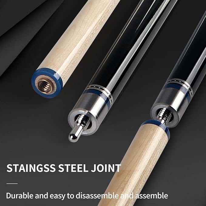 - Professional Pool Cue: Kmise 58-inch 2-piece detachable pool cue, weight 19OZ, made of high-quality Canadian hard rock maple, stainless steel joints, durable and not easy to deform, 13mm multi-layer tip to ensure accurate shots, better energy transfer, is your ideal pool cue choice