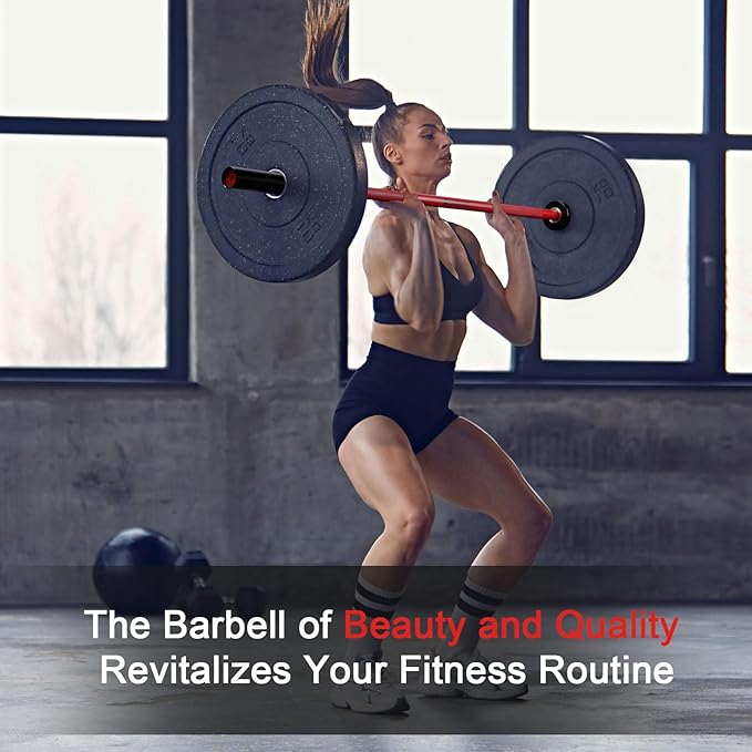 - Infusing Your Fitness Routine with Elegance and Beauty: The barbell with vibrant red color will add enthusiasm to your workout. Many barbells can feel bulky and cumbersome in the hands of women. However, this barbell offers a more ergonomic and manageable solution, allowing for a more natural and comfortable grip. This enables users to execute a wide range of exercises with greater stability and precision.