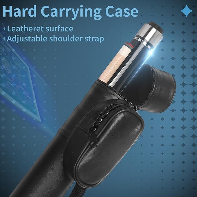 • High-quality Extension Cue: Equipped with a 9-inch carbon fiber pool cue extension cue, which is retractable and adjustable in length. The carbon fiber extension cue adds extra flexibility to your game, allowing you to easily complete long-range shots