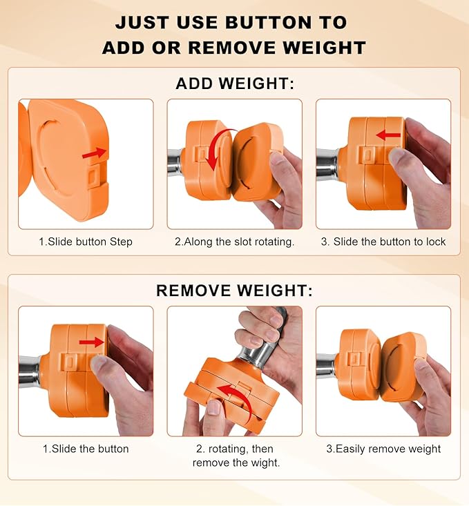 • The mechanism to connect and disconnect the additional weighted pieces are simple to use and twist into place, can be quickly to adjust for more or less weight.