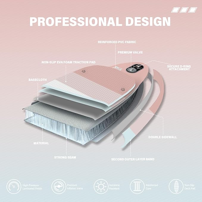 - User-Friendly ElementsοΌEach aspect of our stand up paddle board design prioritizes user convenience. Features like a quick-release fin system, easy inflation and deflation valves, and accessible storage solutions reflect our to creating a hassle-free and enjoyable paddling experience for costumer.