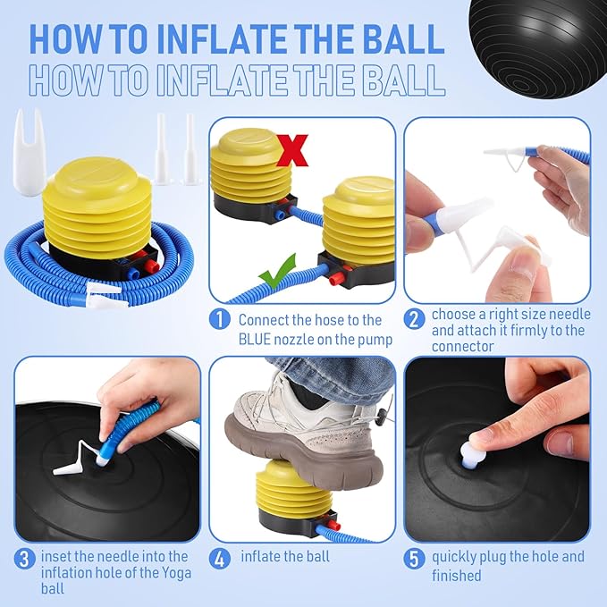 • Flexible and Soft: the yoga ball pack is made of quality PVC material, soft and reliable, anti burst, non slip and no smell, not easy to break or fade, which can maintain elasticity and flexibility in many complex postures