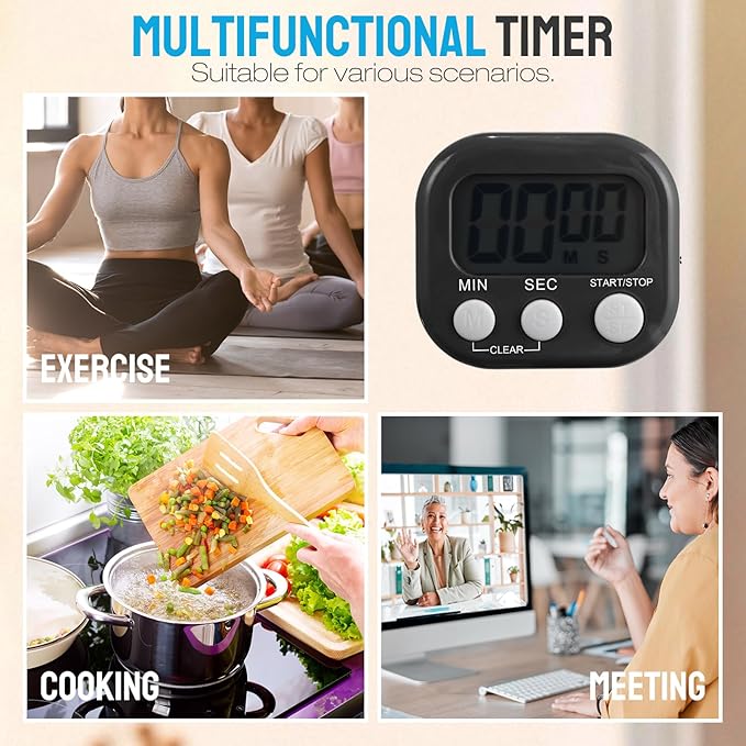 - Widely Application: our small digital kitchen timer can be widely applied in lunch breaks, learning tests, beauty, sports, talk time, meetings, kitchen cooking, parking, experiments for teacher; The different color timers can distinguish the timing of different groups of games and activities