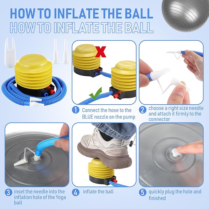 • Flexible and Soft: the yoga ball pack is made of quality PVC material, soft and reliable, anti burst, non slip and no smell, not easy to break or fade, which can maintain elasticity and flexibility in many complex postures