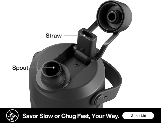 - 2-in-1 Leakproof Lid: Features a straw for easy sipping and a spout for effortless pouring or chugging; Toss it in your bag or car, offering no spills and endless thrills
