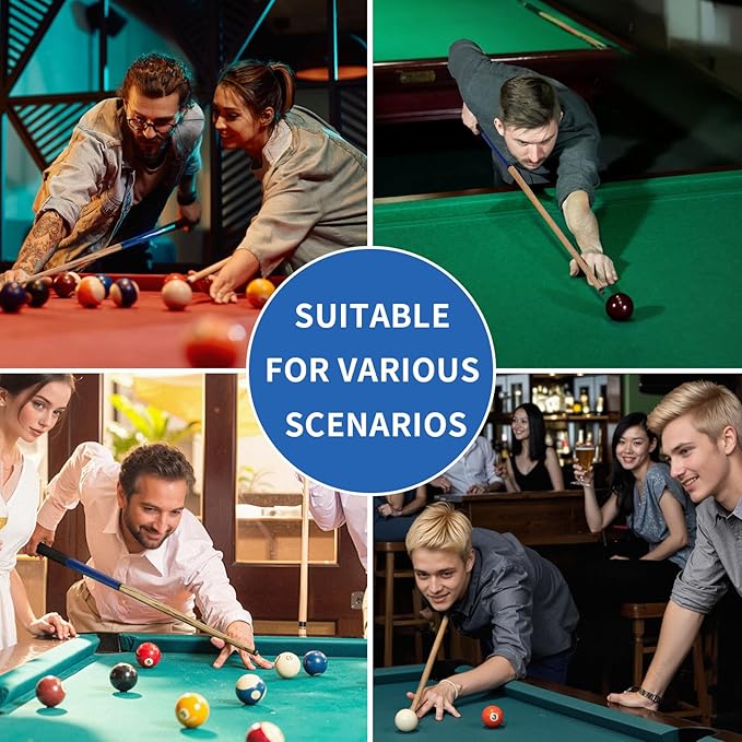 - Exquisite Craftsmanship: Pool cue is made of high-quality North American ash wood, which has been treated with black technology, making it harder than ordinary wood, straighter and less likely to bend.Breaking cue has a high-gloss glossy coating and multiple layers of varnish, which has good solvent resistance, helps protect the wood from moisture and bending, making it easier for players to maintain the cue stick