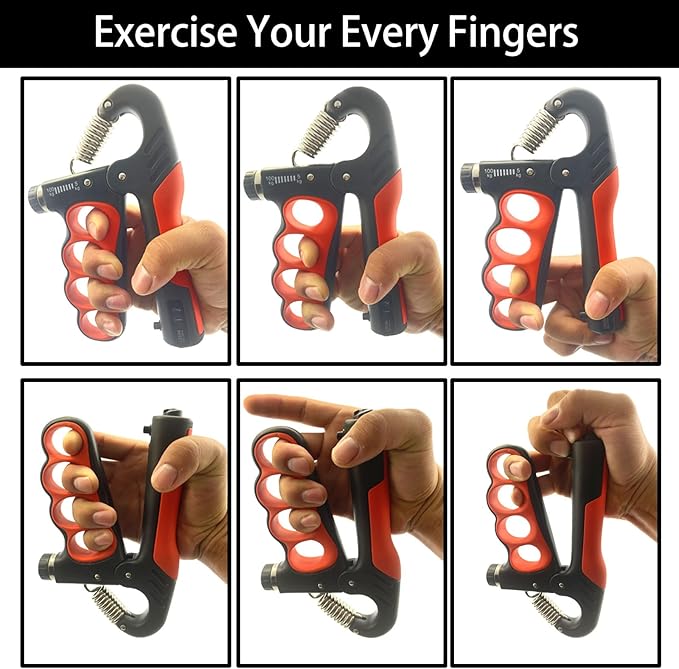 • 1. 【Ergonomic Design​】: Crafted with ​high-strength stainless steel spring​ and ​anti-slip silicone grips, this grip strengthener ensures a secure, fatigue-free workout while protecting your hands from strain. Its contoured shape adapts to any palm size for ultimate comfort.