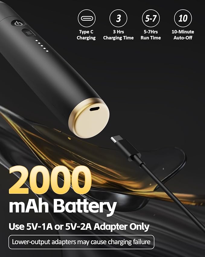 - Brushless Motor & Long Battery Life: Powered by a powerful brushless motor and a 2000mAh battery, enjoy 5β7 hours of use on a single 2.5-hour charge. Includes a 10-minute auto shut-off for safety and operates quietly (<55dB) so you can relax fully