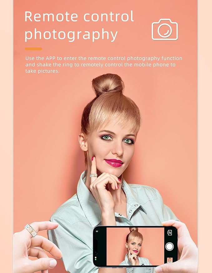 • [Where fashion meets wellness — brilliance at your fingertips.]From sleep tracking to heart health notifications and much more, the advanced sensors in SMARTRING help you better understand your health.RING helps you identify changes in your daily health status. Quickly see your key overnight health metrics right on your finger — including【❤️Heart Rate】,【❤️Blood Pressure】,【🌸Women's Health(Menstrual Cycle)】and 【🛏️Sleep duration】.