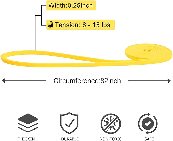 • Resistance Bands Levels: Pull up assist bands come in 3 resistance levels, and each color is different resistance and width for different purposes. Yellow(8-15 lbs), Red(15-35 lbs), Black(25-65 lbs)