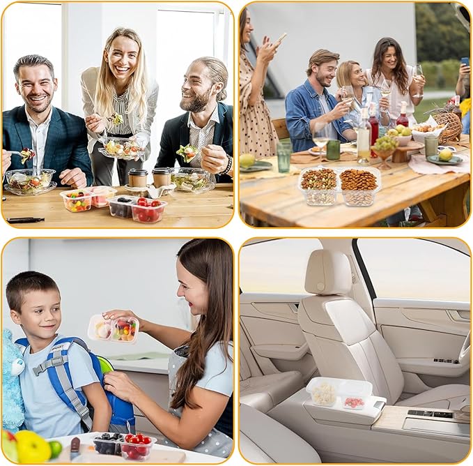 • Dual-Compartment Convenience – Each container features two compartments, ideal for separating snacks and sauces. Great for pairing chips with salsa, fruits with nut butter, or veggies with dips.