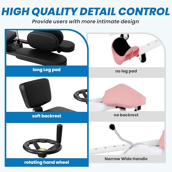 - Adjustable Design:Featuring a 240 degree adjustable split mechanism, it offers great flexibility. The rotating handwheel allows precise angle adjustment. Whether for deep hamstring stretches or hip opening moves, users can customize according to their goals and flexibility levels. The adjustable seat and backrest enhance comfort.