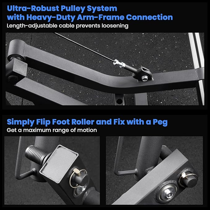 - Effortless Accessibility, Smart Adjustability: We discard the impractical knee holder to make it effortless and smooth to enter and exit. 6 seat depth adjustable backrest will accommodate users of all heights. Our self-adjusting foot roller with its 9 angles adjustable arm will conform to your leg position naturally (convertible and lockable via quick-pin). Instantly switch between seated and prone training modes with one-pull pin.